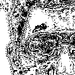 Cycling Bit Sum Match For each new video frame a match number increments, cycling from 0 to 7. For each 8-bit source pixel, the bits are summed. If the sum of the 8 bits equals the match number, the pixel is displayed as white. If the sum does not equal the match number, the pixel is displayed as black. |
